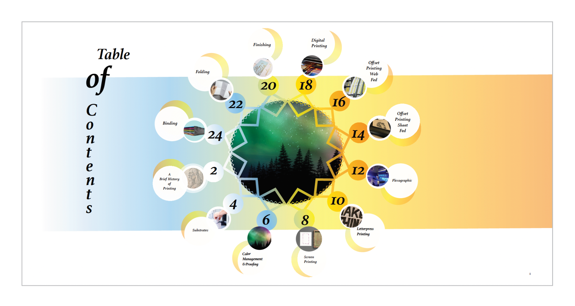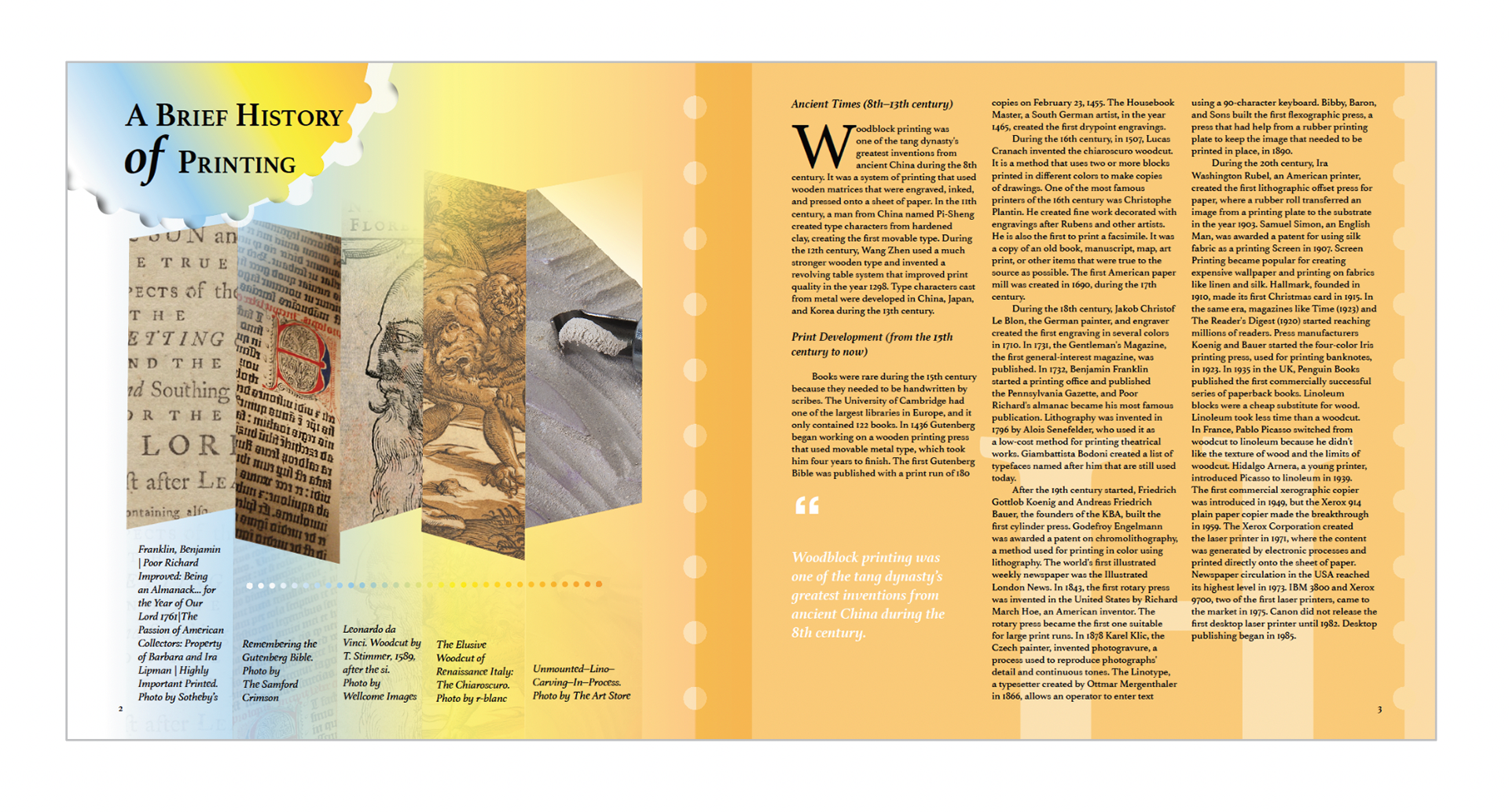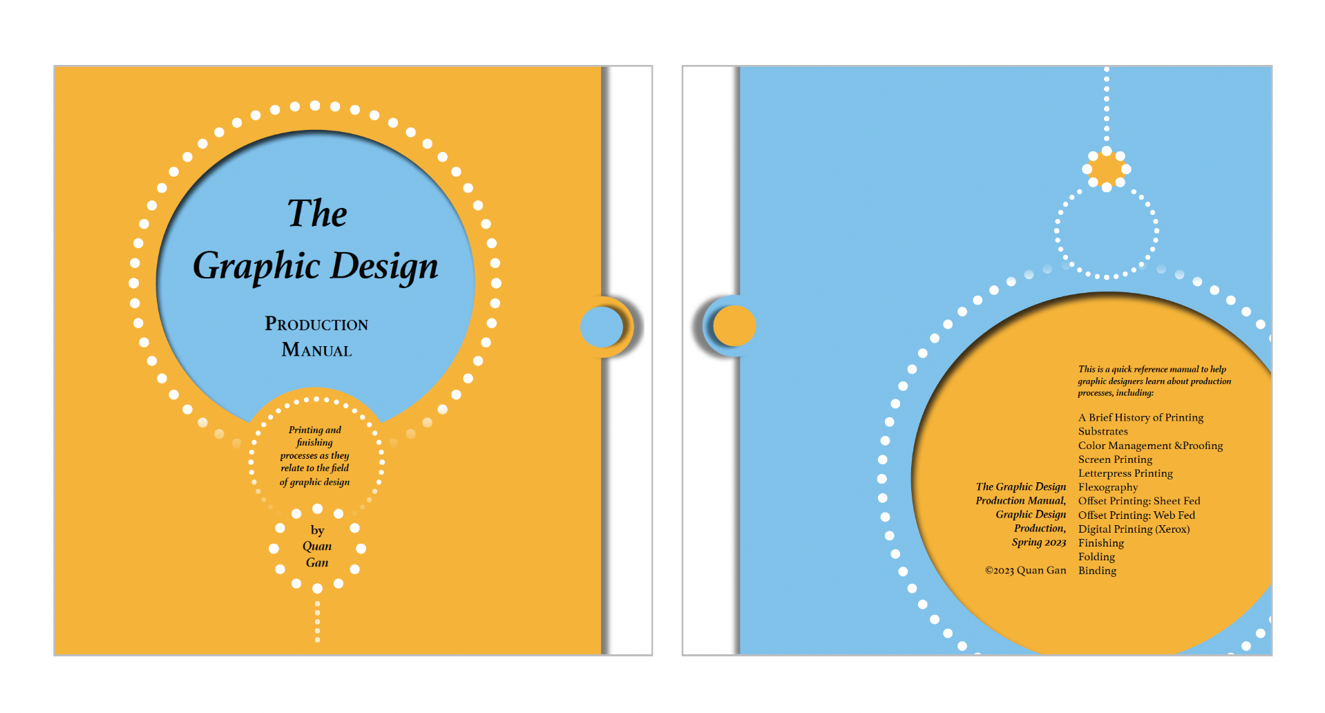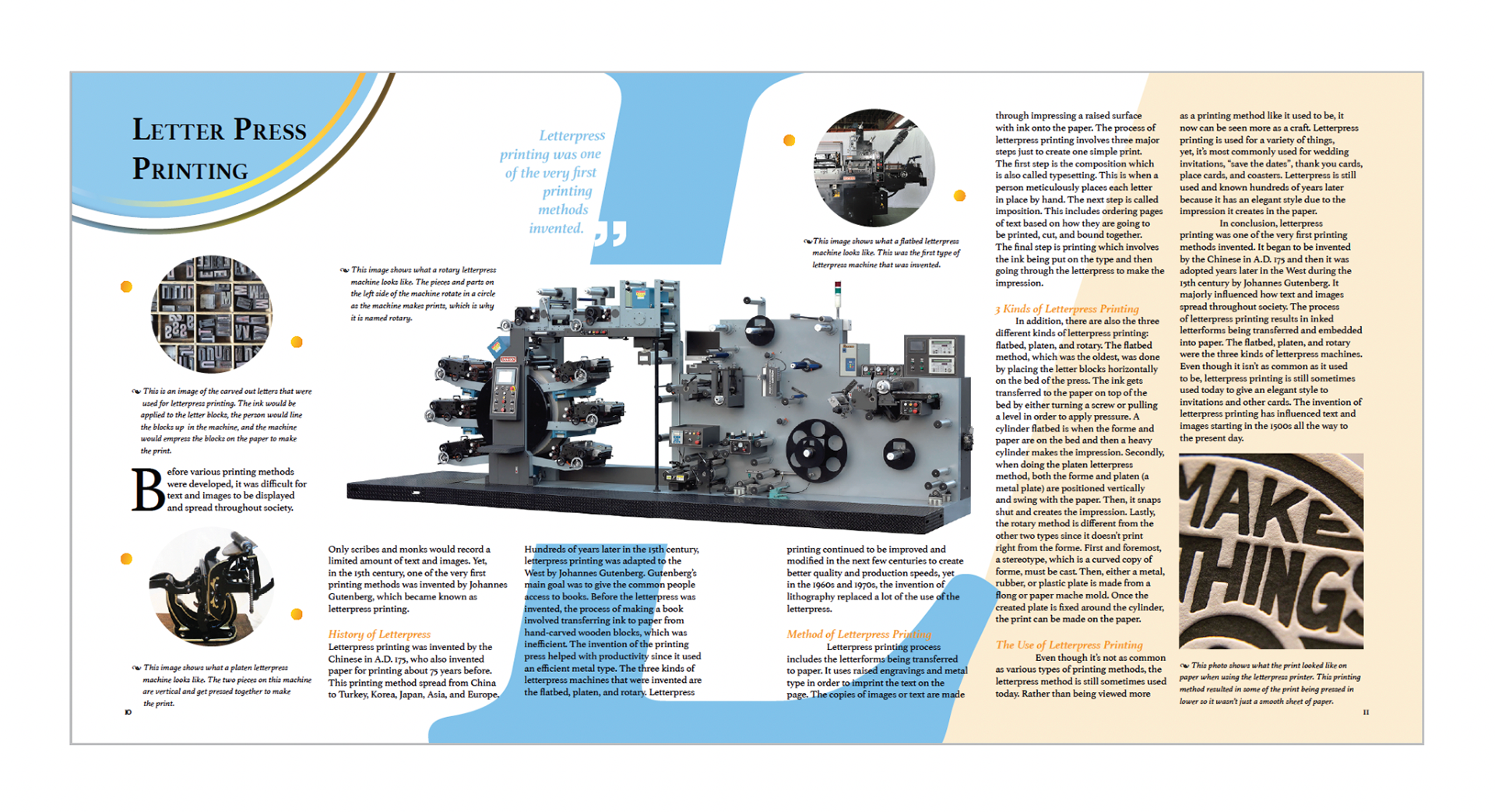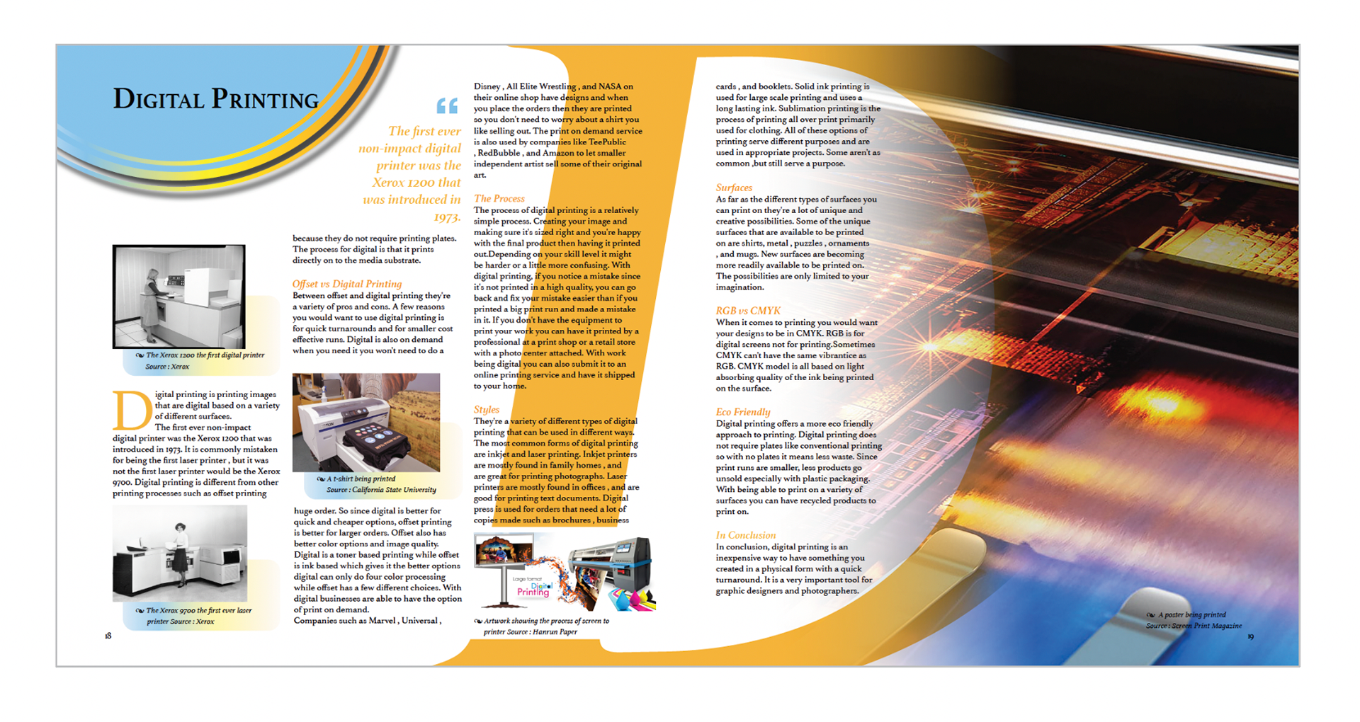 The multi-page booklet features a bold blue and orange color scheme. With large letter sizes, a precise grid layout, and consistent text and image placement, it creates a cohesive and engaging presentation.